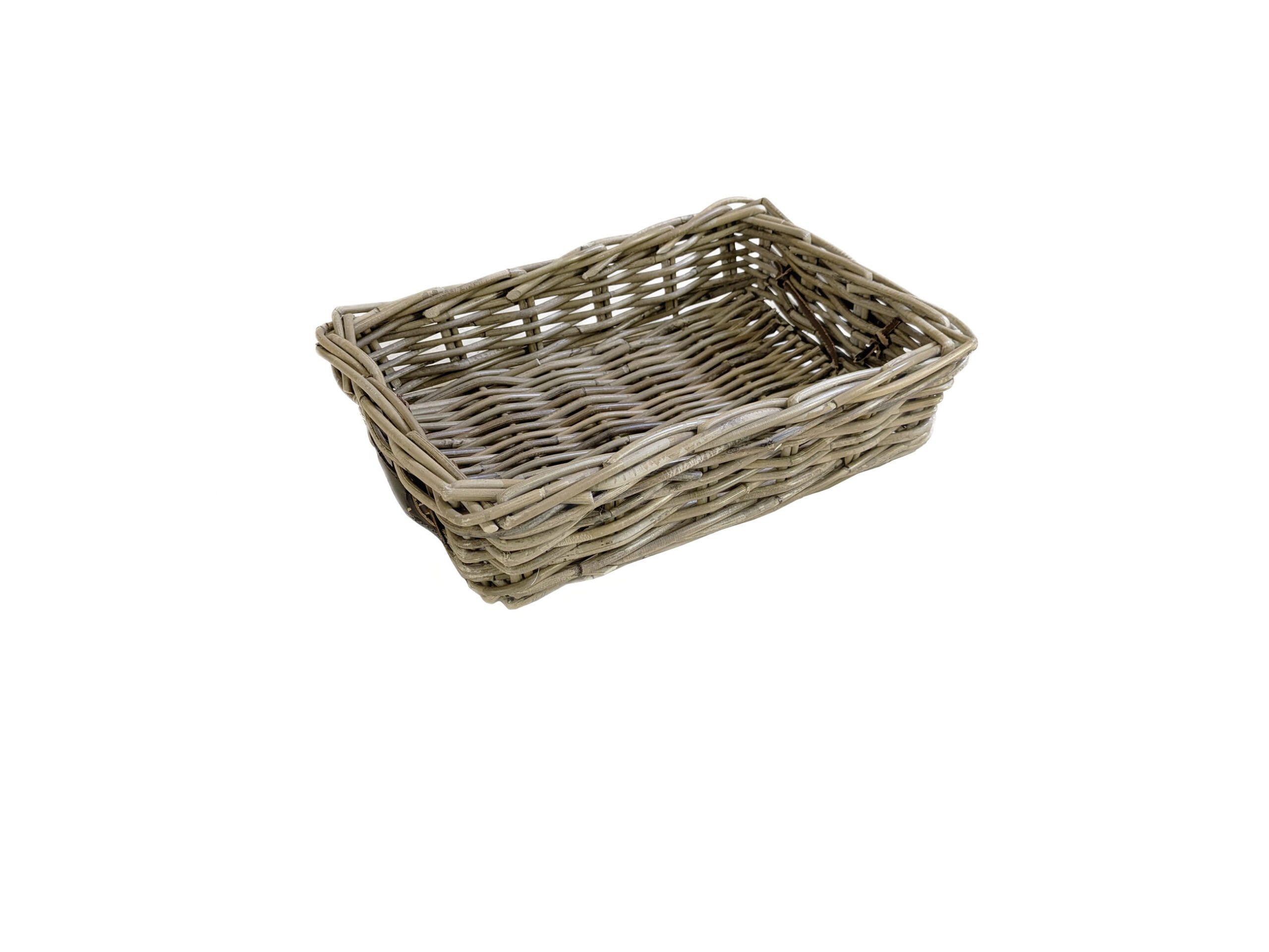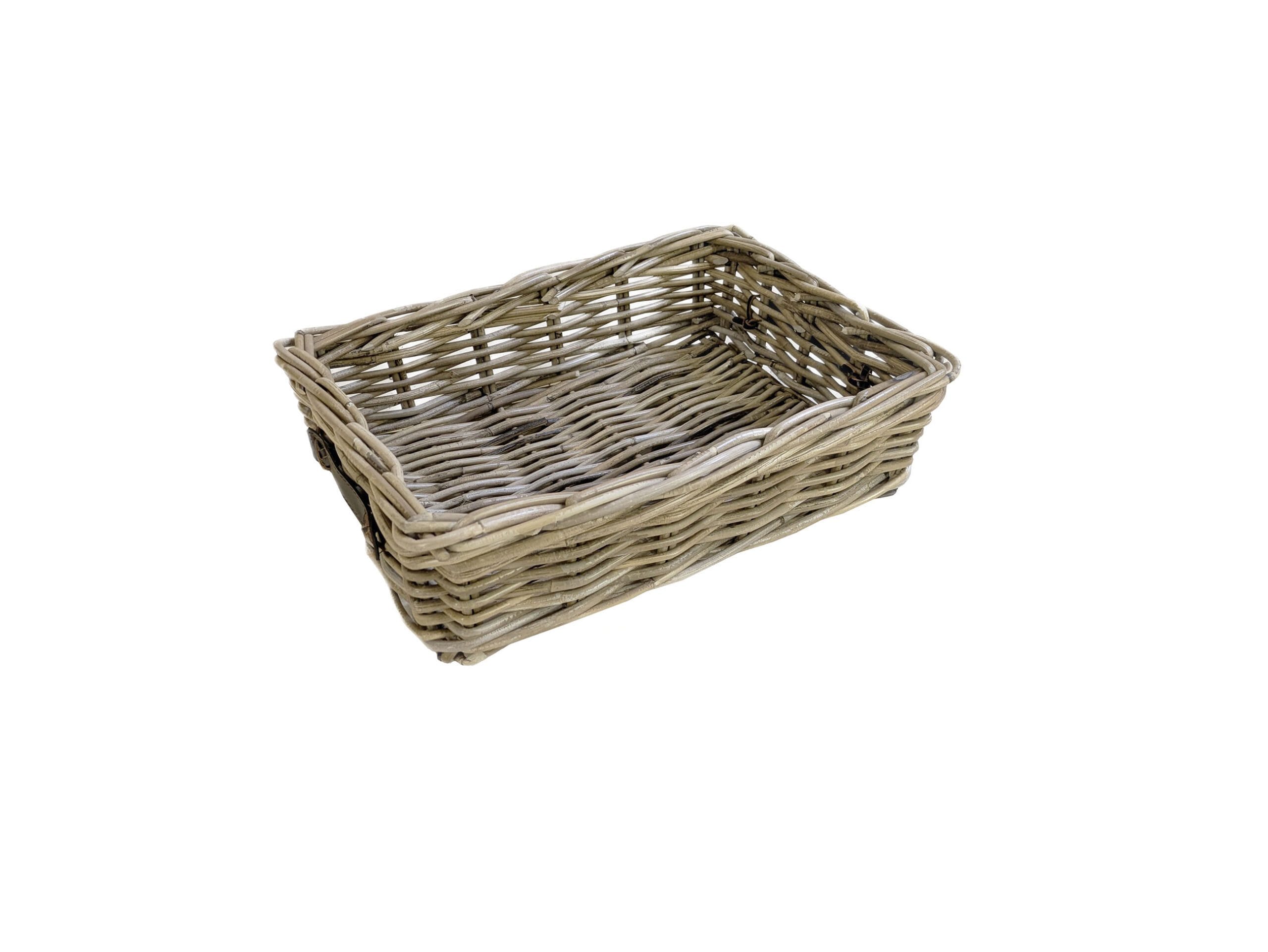 Mand gemaakt van Grey Rotan met leren handgrepen.