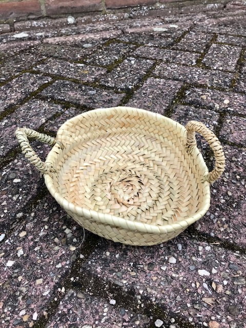 Leuk schaaltje gemaakt van palmblad met 2 opstaande oortjes en klein opstaand randje
